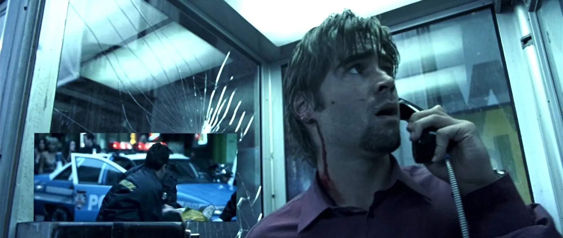 Actors: Colin Farrell as Stu Shepard, Kiefer Sutherland as The Caller, Forest Whitaker as Captain Ramey, Radha Mitchell as Kelly Shepard, Katie Holmes as Pamela McFadden, Paula Jai Parker as Felicia, Arian Ash as Corky, Tia Texada as Asia, John Enos III as Leon, Richard T. Jones as Sergeant Cole, Keith Nobbs as Adam, Dell Yount as Pizza Guy, James MacDonald as Negotiator, Josh Pais as Mario, Yorgo Constantine as ESU Commander, Colin Patrick Lynch as ESU Technician, Troy Gilbert as ESU Sniper, Seth William Meier as Officer McDuff, Svetlana Efremova as Erica, Billy Erb as Lars, Domenick Lombardozzi as Wyatt, Maile Flanagan as Lana, Tom Reynolds as Richard, Julio Oscar Mechoso as Hispanic Medic, Karara Muhoro as Nigerian Vendor, Zidu Chen as Korean Husband, Shu Lan Tuan as Korean Wife, Dean Cochran as Reporter #1, Amy Kowallis as Reporter #2, Tory Kittles as Reporter #3, Bruce Roberts as Reporter #4, Tyree Michael Simpson as Doorman, Dean Tarrolly as Newscaster, Mary Randle as Dispatcher, Paul Fontana as Dispatcher, Steve Alterman as (voice), Kimberly Bailey as (voice), Jason Broad as (voice), Lanei Chapman as (voice), Django Craig as (voice), Judith Durand as (voice), Greg Finley as (voice), Ramón Franco as (voice), Anneliese Goldman as (voice), Rick Gonzales as (voice), Tracy Metro as (voice), Jason Pace as (voice), Juan Pope as (voice), Nicole Prescott as (voice), Cheryl Tyre Smith as (voice), John Vargas as (voice), Tanya Vidal as (voice), Billy 'Sly' Williams as (voice), Ruth Zalduondo as (voice), Ben Foster as Big Q (uncredited), Jared Leto as Bobby (uncredited)