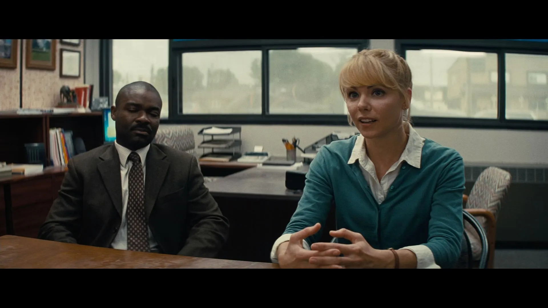 Actors: Matthew McConaughey as Joseph "Coop" Cooper, Anne Hathaway as Dr. Amelia Brand, Jessica Chastain as Murphy "Murph" Cooper, Bill Irwin as TARS (voice), Ellen Burstyn as Old Murph, Michael Caine as Professor John Brand, Mackenzie Foy as Young Murph, Casey Affleck as Tom Cooper, John Lithgow as Donald, Wes Bentley as Doyle, David Gyasi as Romilly, Matt Damon as Mann, Topher Grace as Getty, Timothée Chalamet as Young Tom, David Oyelowo as School Principal, William Devane as Williams, Josh Stewart as CASE (voice), Collette Wolfe as Ms. Hanley, Leah Cairns as Lois, Russ Fega as Crew Chief, Lena Georgas as Nurse Practitioner, Jeff Hephner as Doctor, Elyes Gabel as Administrator, Brooke Smith as Nurse, Liam Dickinson as Coop, Francis X. McCarthy as Boots, Andrew Borba as Smith, Flora Nolan as Girl on Truck, William Patrick Brown as NASA Employee (uncredited), Kristian Van der Heyden as Scientist (uncredited), Joseph Oliveira as Astronaut (uncredited), Ryan Irving as Popcorn Seller (uncredited), Alexander Michael Helisek as Construction Boss (uncredited), Benjamin Hardy as NASA Scientist (uncredited), Griffen Fraser as Boy on Truck